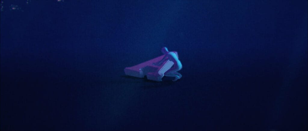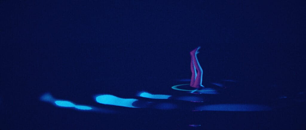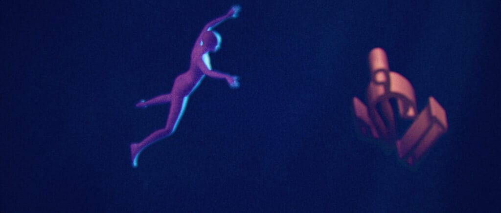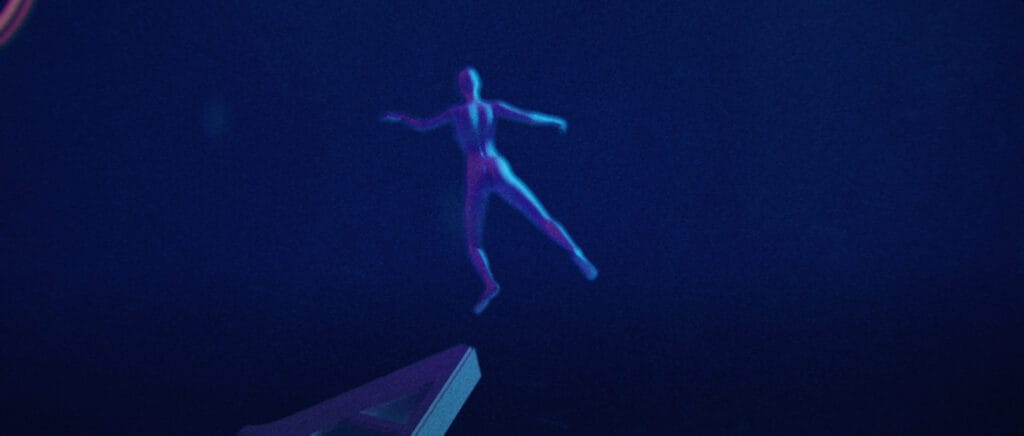 The video captures the essence of diving and resurfacing from the depths of the city, frozen in a still frame that radiates the coolest cinephile vibes. A genderless female figure, the protagonist, glides through a dreamlike 3D world, her form shimmering with a translucent glow as she moves through an urban underwater realm.