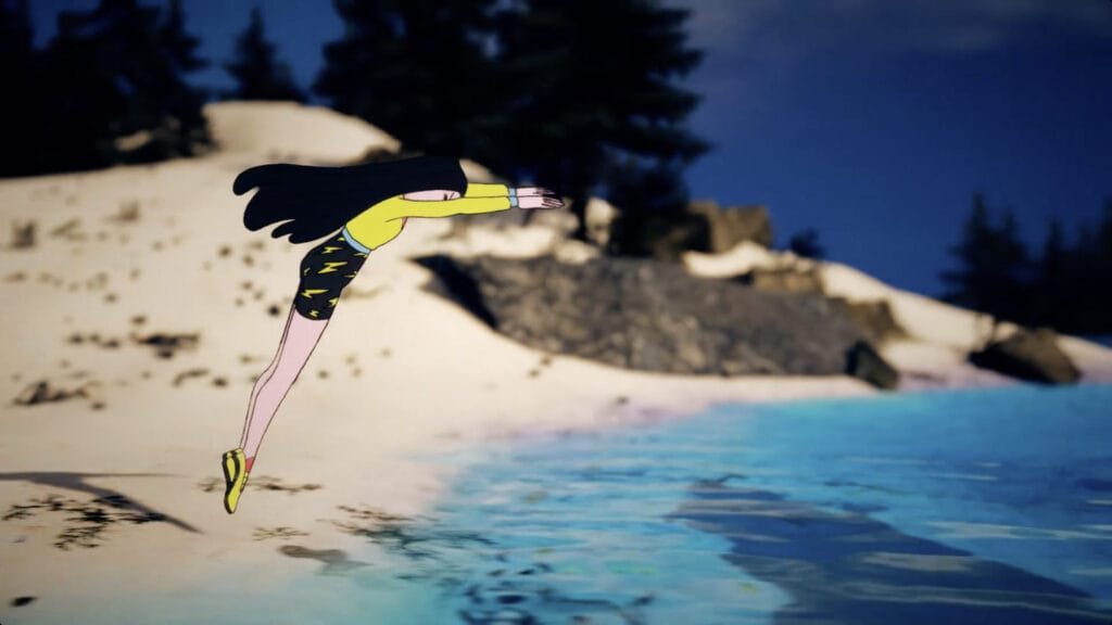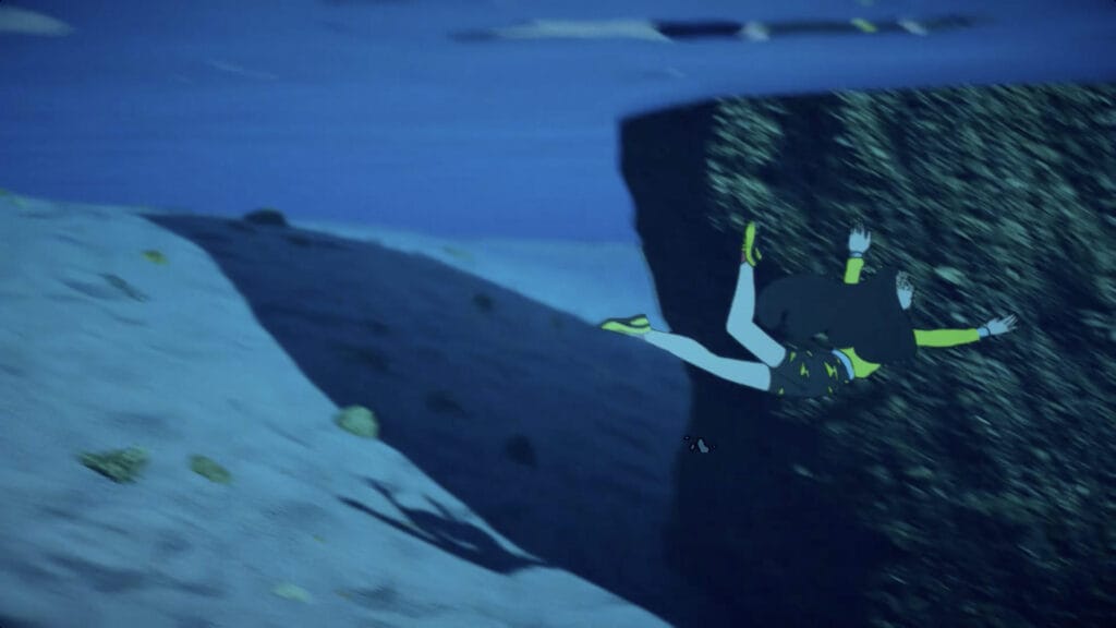 Persa, the centerpiece character, is brought to life in vibrant 2D animation, her determined expression and windswept hair exuding courage as she scales cliffs, dives into azure waters, and races through rugged Greek landscapes. The 3D environments—featuring sun-drenched islands, rocky mountains, and ancient ruins—add depth and realism, with a color palette of fiery oranges, deep blues, and earthy greens amplifying the thrill of exploration. The camera glides, following Persa’s daring moves, as finally the sun sets on a beautiful landscape.